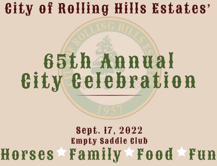 The City of Rolling Hills Estates will celebrate their 65 years of incorporation at the Empty Saddle Club on Saturday, September 17, 2022, from 9:00 a.m to 3:00 p.m. with hay rides, pony rides, petting zoos, stickers and stick races.