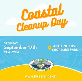 The City of Rancho Palos Verdes will join Los Serenos de Point Vicente to host Coastal Cleanup Day in Palos Verdes on Saturday, September 17, 2022, at Abalone Cove Shoreline Park.
